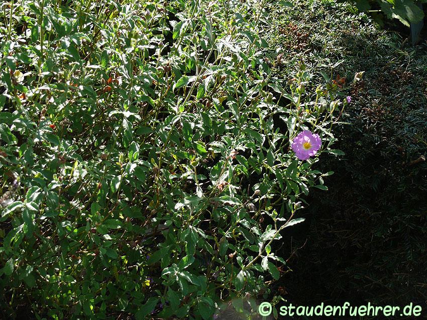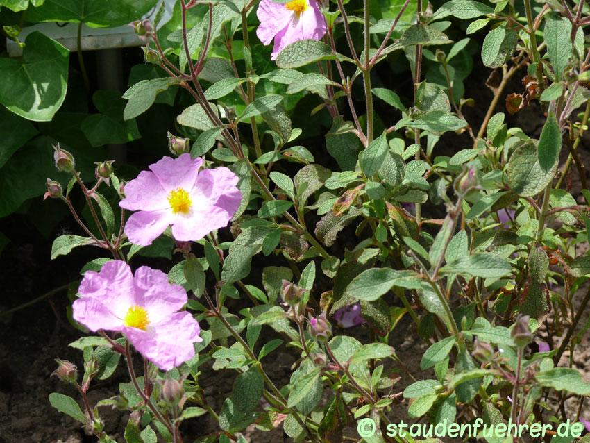 The Cistus creticus (Pink Rock-Rose, Hoary Rock-Rose) is perennial, belongs to the Cistaceae family and is a garden bed plant. The flowers are pink and the leaves green. The shrub will be up to 120 cm (47.2 in) high. The soil conditions should be well-drained and the plant area sunny.
