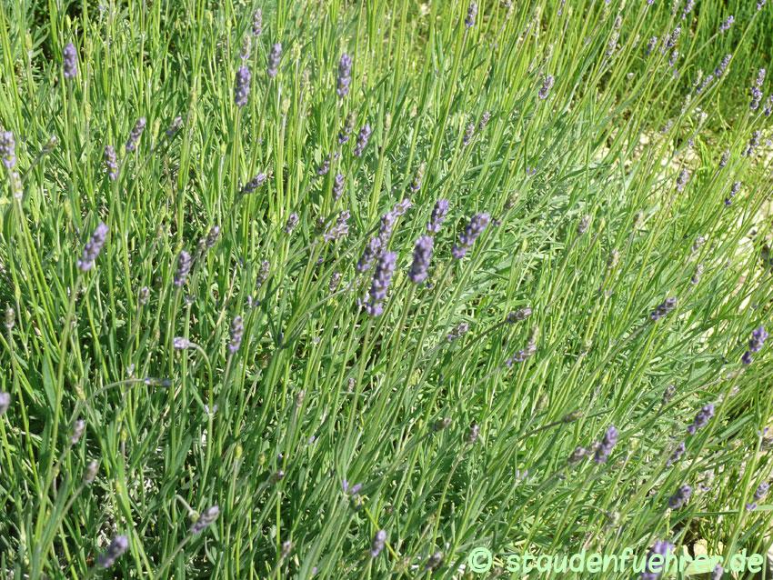 The Lavandula angustifolia (Common lavender, Narrow-leaved lavender, English lavender, True lavender) is perennial, belongs to the Lamiaceae family and is a container plant, garden bed plant. The flowers are purple and the leaves green. The herbaceous perennial plant will be up to 70 cm (27.5 in) high. The soil conditions should be well-drained and the plant area sunny.
