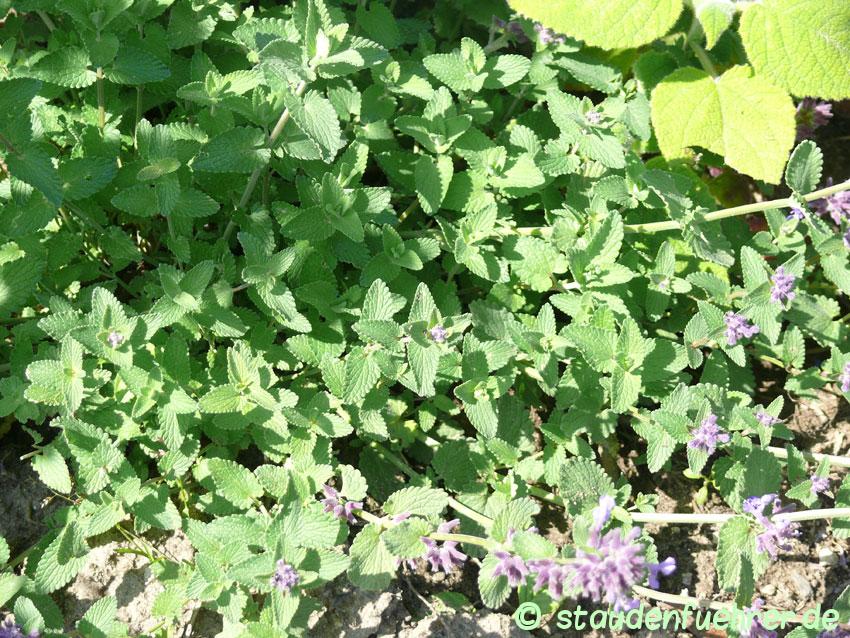 The Nepeta citriodora (Common catmint) is perennial, belongs to the Lamiaceae family and is a garden bed plant. The flowers are purple, blue and the leaves green. The herb, herbaceous perennial plant will be up to 60 cm (23 in) high. The soil conditions should be well-drained and the plant area sunny.